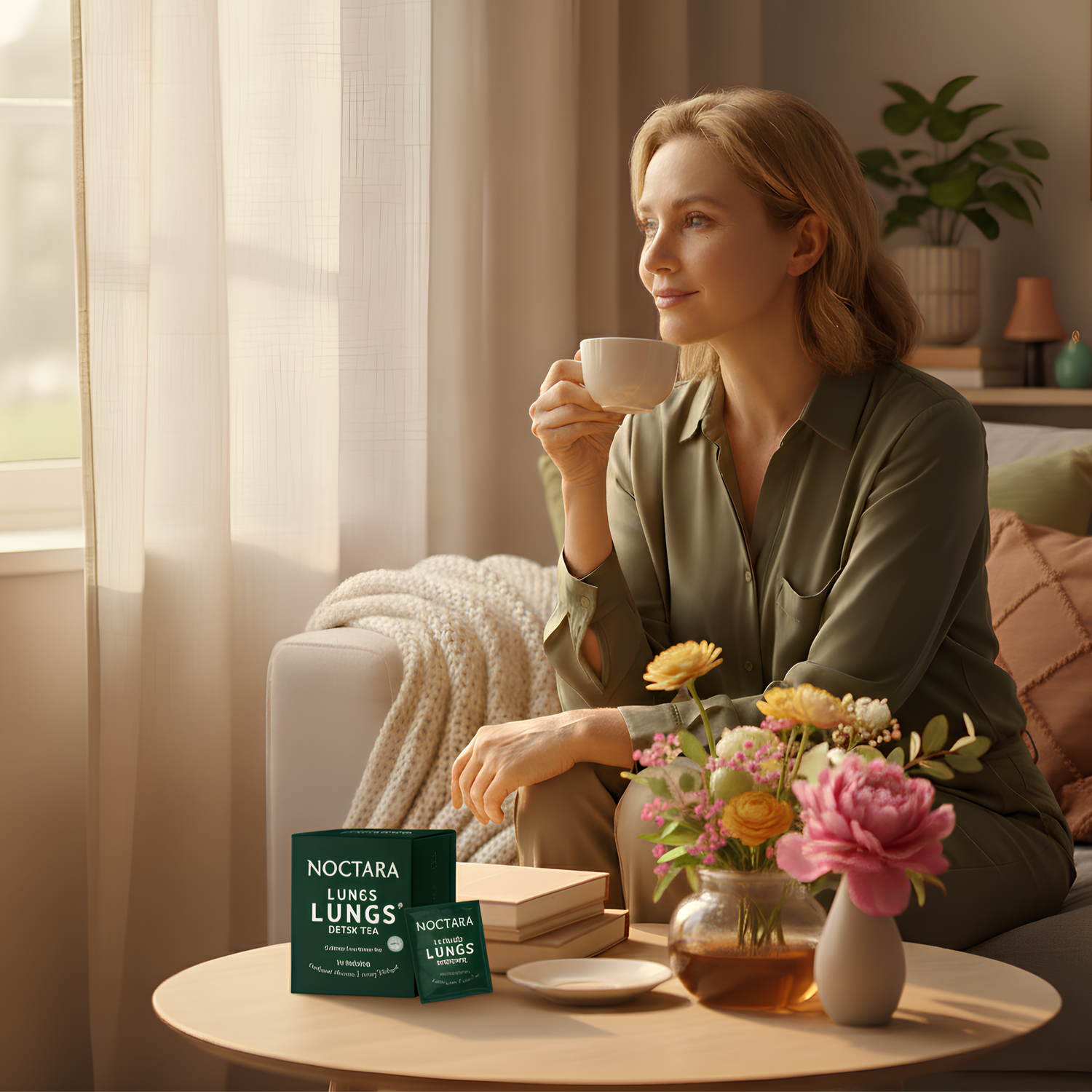 At NOCTARA™, we don’t just craft herbal teas—we create rituals for renewal. Each bag is thoughtfully blended with mullein leaves to gently cleanse the lungs, clear the airways, and support easy, natural breathing—so you can breathe deeper, feel lighter, and live each day with clarity and calm.