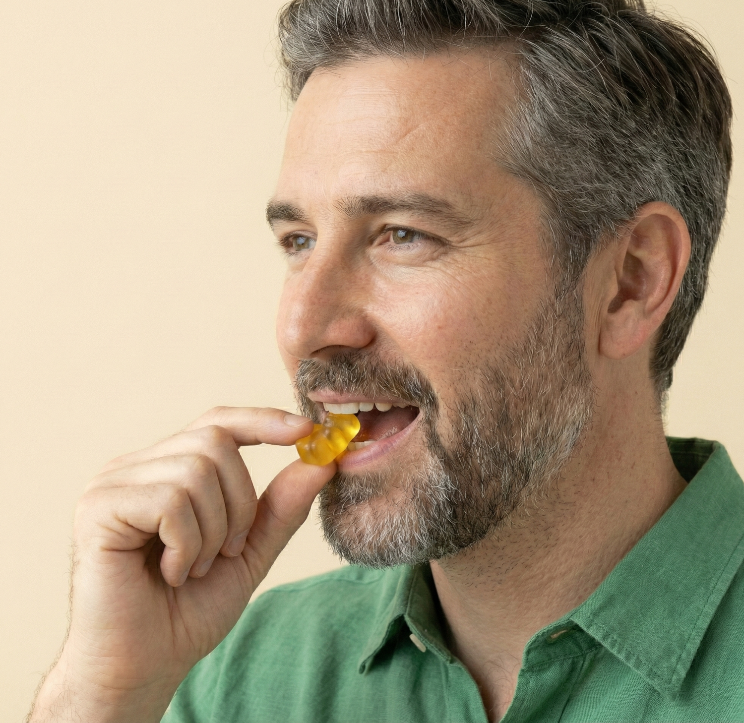 Take 2 gummies daily, preferably with food. Consistent daily use is recommended for best results.